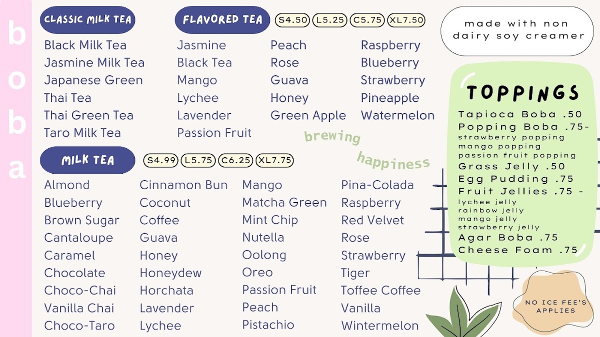 “ One of my favorite places to get boba and food. It was sad when they closed down for a little bit for remodeling or whatever they were doing but the new place is so lively and peaceful. Very calm, relaxing and clean inside. I got the Mango milk tea with strawberry and mango jelly And spam musubi which I was trying to find somewhere close to get and this is perfect ”